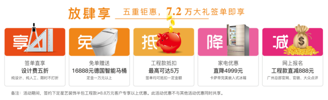 當裝修遇上小長假,讓優質與優惠齊飛。五重鉅惠,7.2萬簽單大禮放肆享。花一樣的錢裝修,享受更好的家居品質。