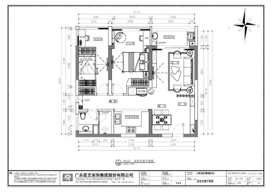 根據現場的情況,設計師的設計思路,先把客廳、餐廳、廚房這幾個公共空間開放出來,再把進衛生間要經過廚房弊端動線做調整,且擴大主臥和次臥的空間。因為房子是向西朝向,會比較曬比較熱,所以在現代簡約風格的基礎上,設計師考慮在客廳與主臥背景采用高級灰冷色調,調和了空間。