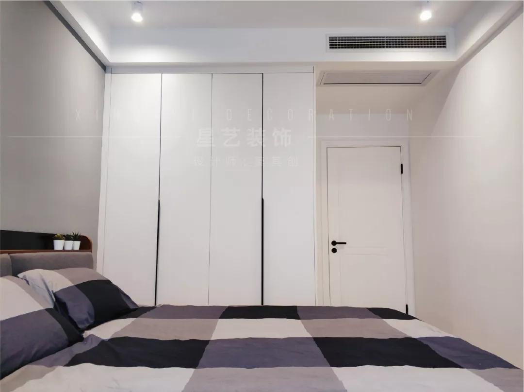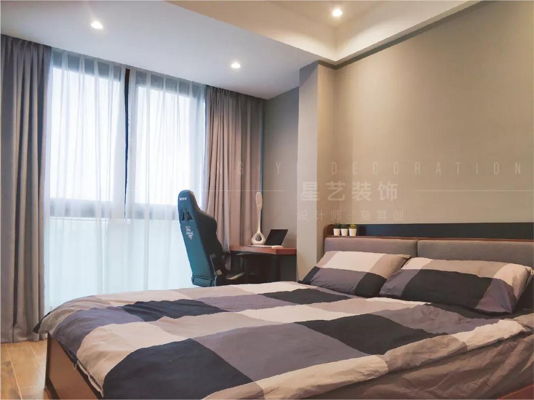主臥用落地玻璃窗將原先的陽臺封起來,然后把陽臺給打掉,讓陽臺的空間劃分到主臥里,擴大了整個主臥空間。