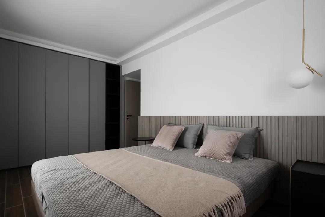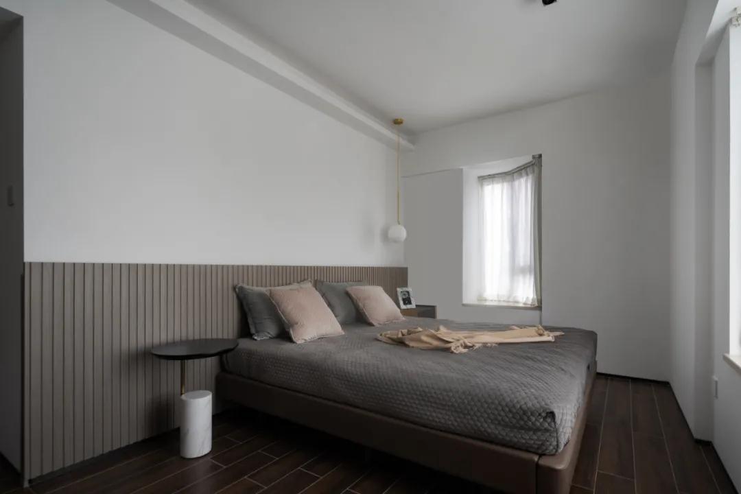 主臥就設(shè)計(jì)比較簡單了,床靠后以半墻條紋型的護(hù)墻板做裝飾,在簡潔的空間中點(diǎn)綴以適當(dāng)?shù)募±砑?xì)節(jié),濃淡相宜。