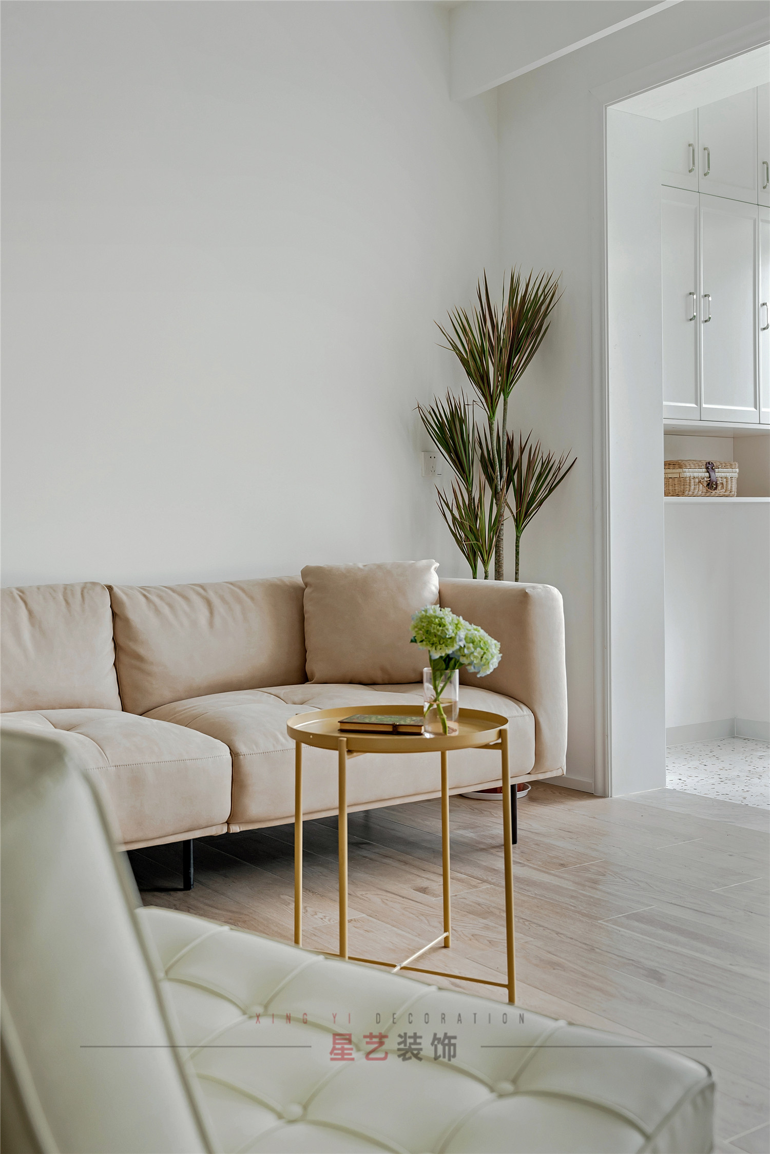 客廳入眼則是極簡與自然的風格,用白色加原木色的搭配將素雅純凈的力量充分發揮出來,構筑出寧靜和諧,靜養人心的溫暖小家。