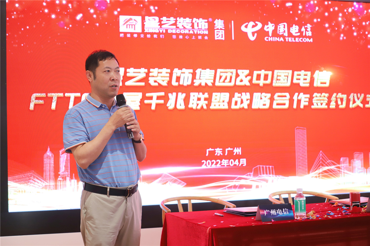 2022年4月24日,星藝裝飾廣州分公司與中國電信廣州分公司FTTR全屋千兆項目戰略合作簽約儀式在廣州市星藝整裝體驗館圓滿舉行,在立足客戶需求為出發點,合作共贏的基礎上,正式達成FTTR全屋千兆項目戰略合作伙伴關系,實現強強聯合、優勢互補。