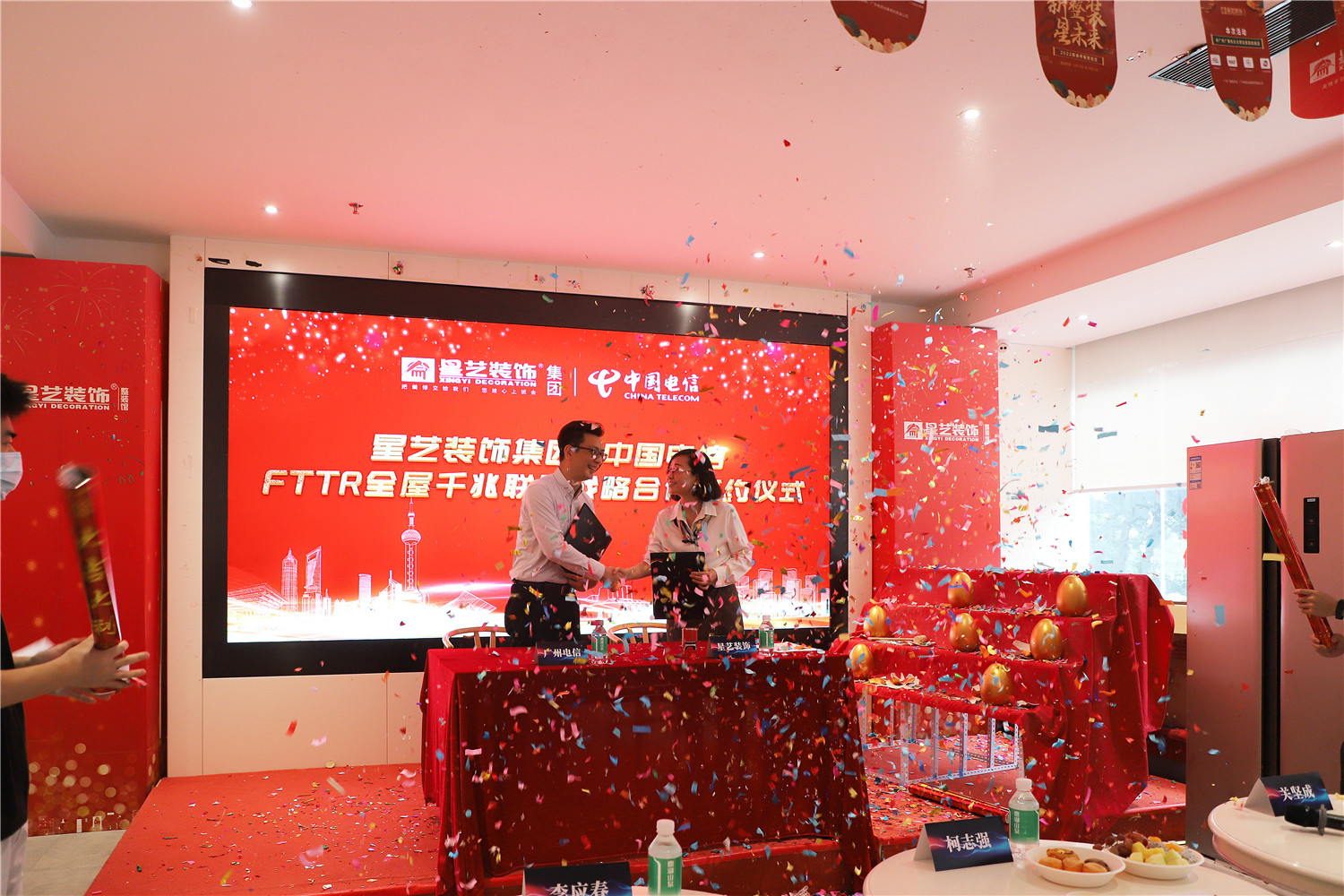定了!星藝裝飾與中國電信FTTR全屋千兆項目聯盟戰略合作簽約儀式圓滿成功!