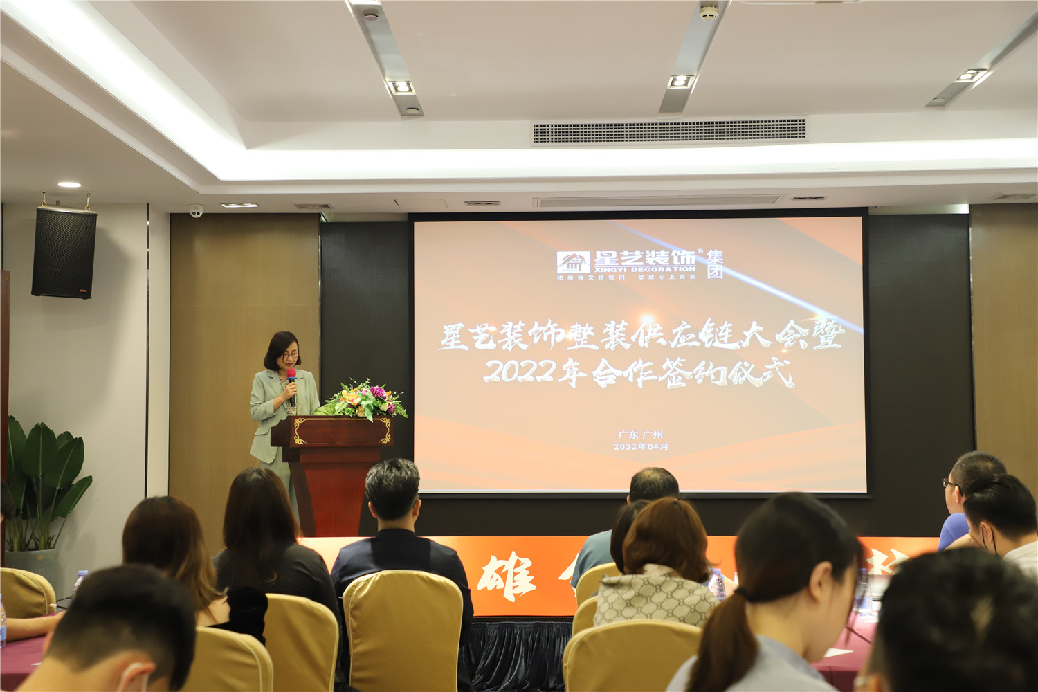 2022年4月27日,星藝裝飾集團廣州分公司隆重舉行星藝裝飾整裝供應鏈大會。“群雄合力◆聚夢同行”,星藝裝飾始終堅信合作共贏是企業(yè)生存、發(fā)展的最高智慧,如今的累累碩果更離不開每位合作供應商的高度信賴與鼎力支持。