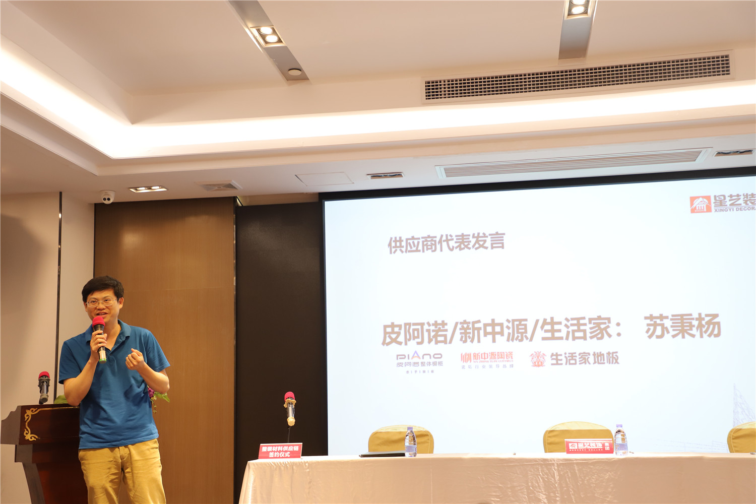 活動尾聲,由星藝裝飾集團廣州分部總經(jīng)理柯志強進行演講;回顧星藝裝飾三十余年的不懈奮斗,柯總深切感受到團結合作對企業(yè)的重要意義,也對每位供應商及星藝大家庭的小伙伴們表示感謝;同時也希望在以后的合作中可以進一步實現(xiàn)提升,發(fā)展和壯大,讓星藝裝飾能走的更穩(wěn),更遠!