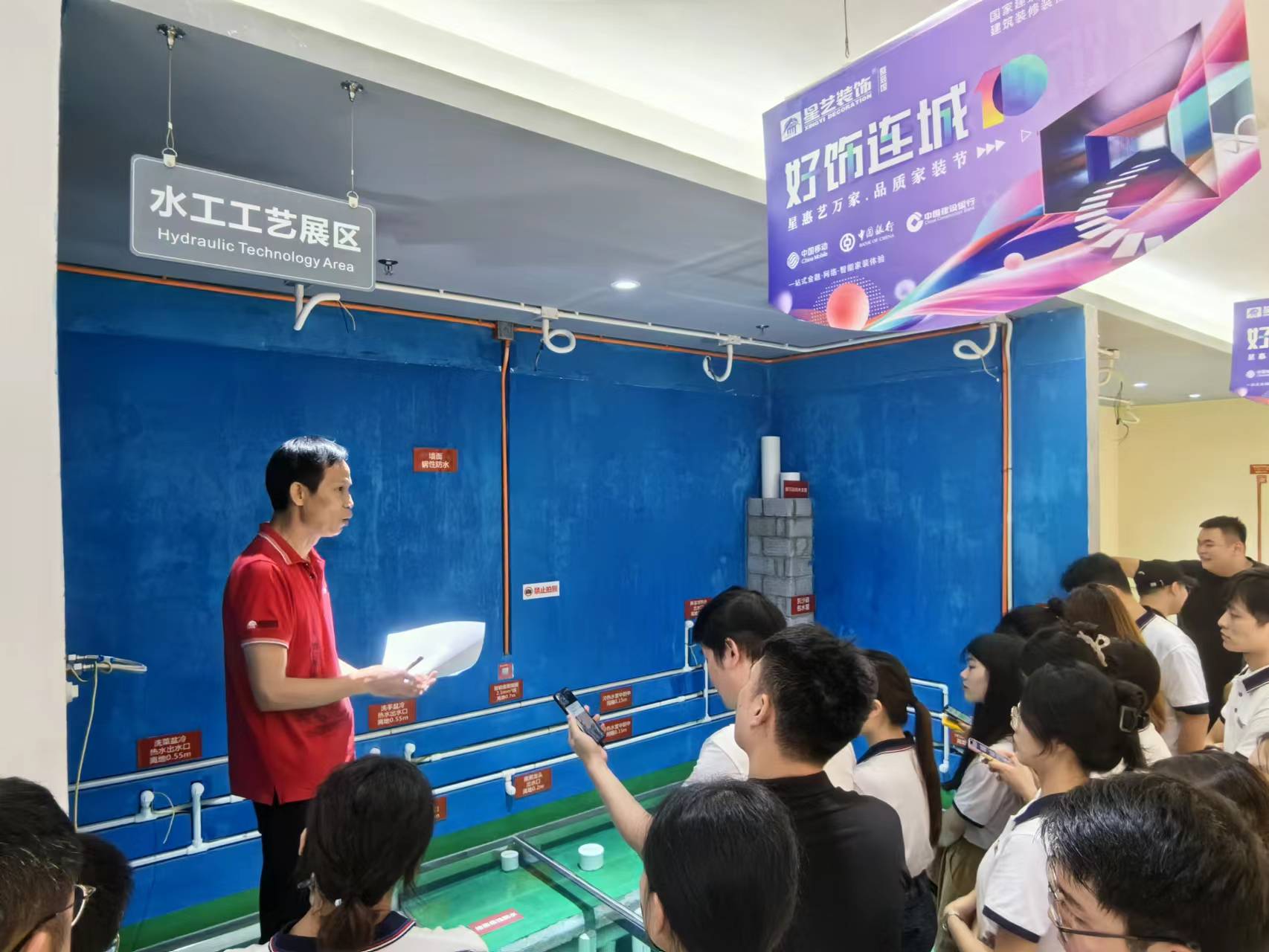 余經理借助星藝展廳的工藝展示,介紹了墻面和吊頂工藝流程+衛生間沉箱施工。